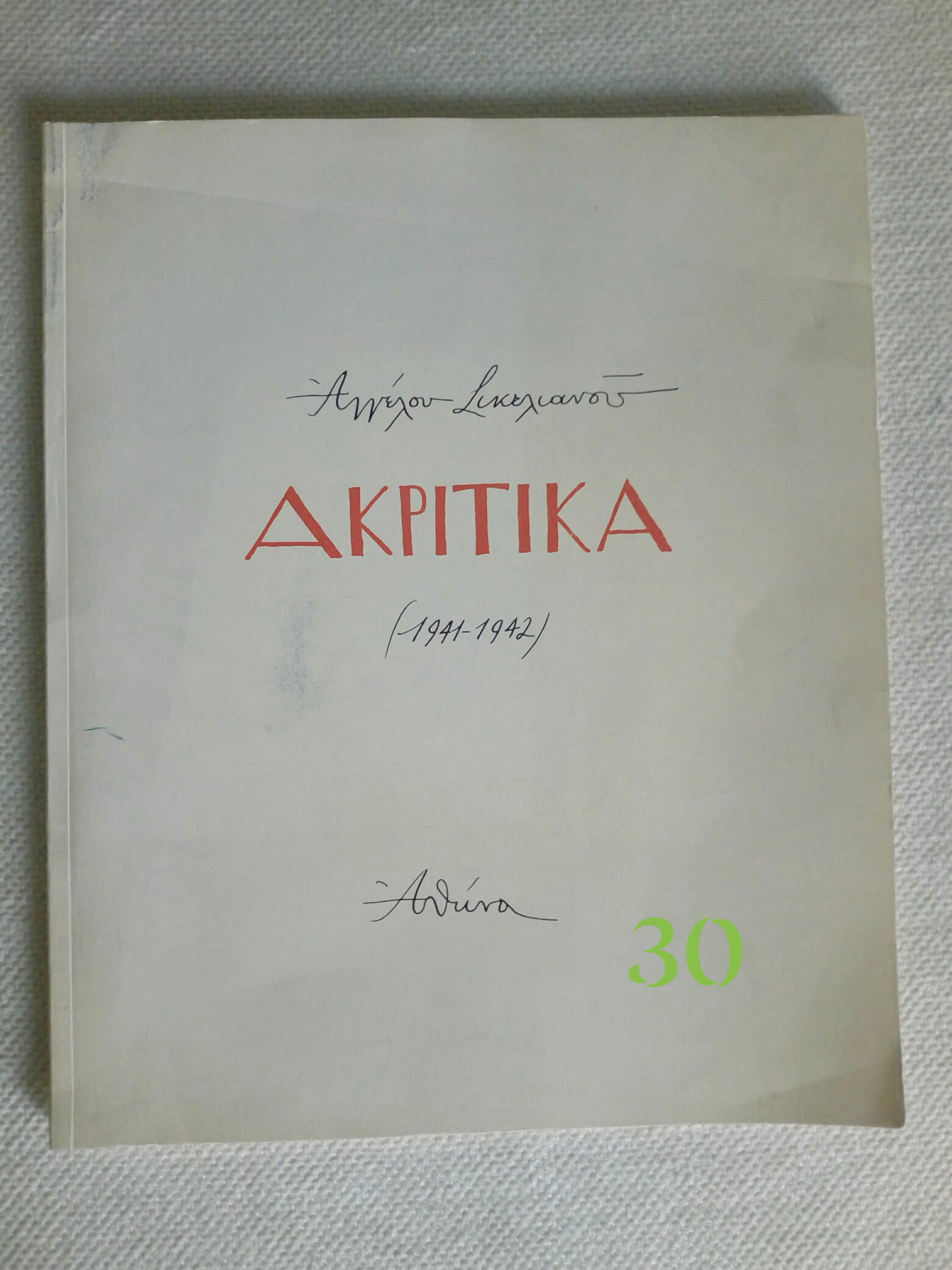 Ακριτικά Άγγελος Σικελιανός (1941-1942) Ανάτυπο για το έτος Σικελιανού 1981
