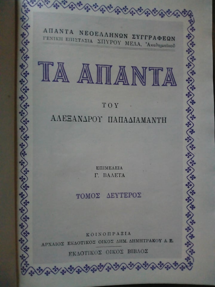 Τα ‘Απαντα Αλέξανδρος Παπαδιαμάντης Τόμος δεύτερος 1954