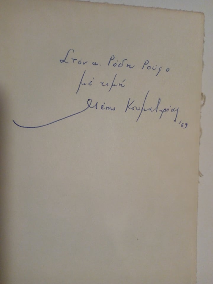Με ιδιόχειρη αφιέρωση του συγγραφέα στο Ρόδη Ρούφο.
