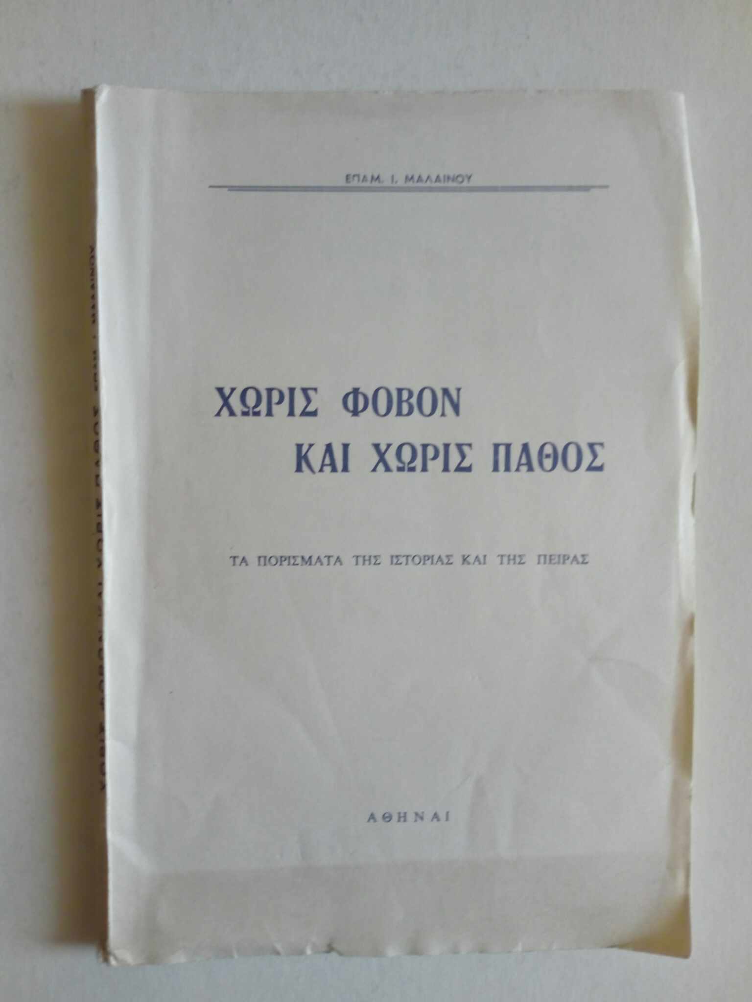 Χωρίς φόβον και χωρίς πάθος Επαμεινώνδας Μάλαινος Αθηναι