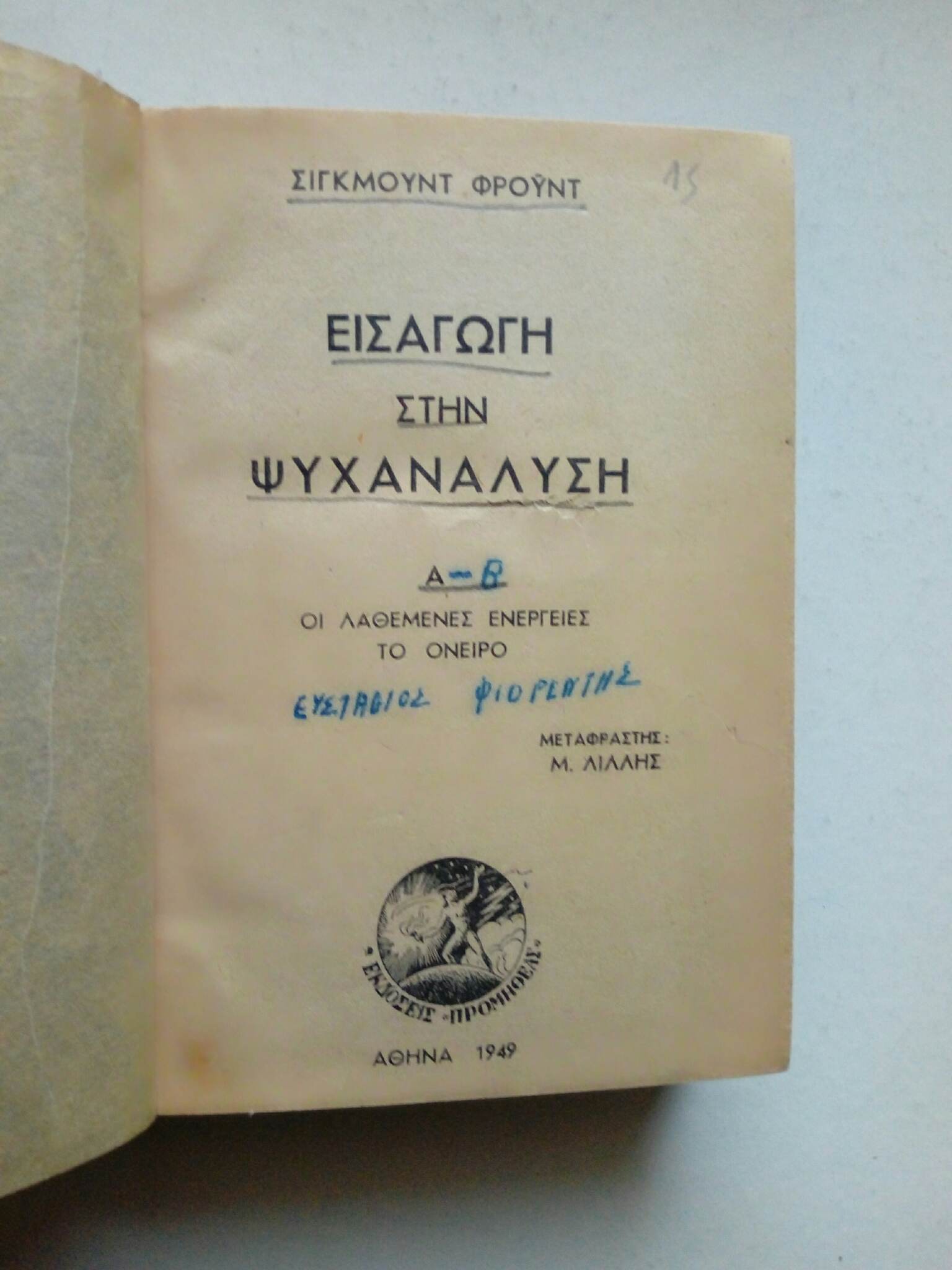 Εισαγωγή και ψυχανάλυση Σίγκμουντ Φροϋντ Προμηθέας 1949