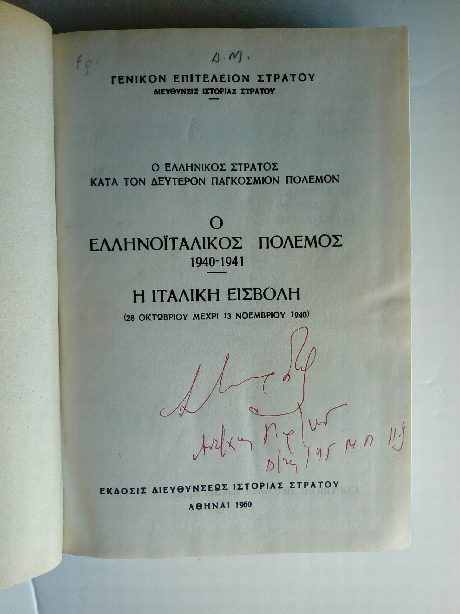 Ο ελληνοϊταλικός πόλεμος (1940-1941) Γενικόν Επιτελείον Στρατού Αθήναι 1960