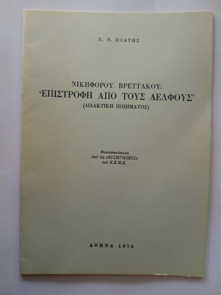 Επιστροφή από τους Δελφούς Νικηφόρου Βρεττάκου Διδακτική ποιήματος Ε.Ν Πλατής Αθήνα 1976