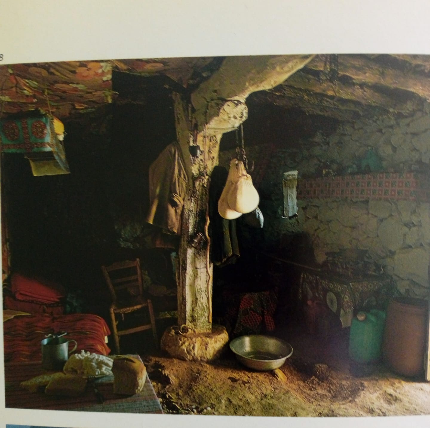 Εσωτερικό μιτάτου στο οροπέδιο του Καθαρού. Ο κέντης στηρίζει το μεσοδόκι.