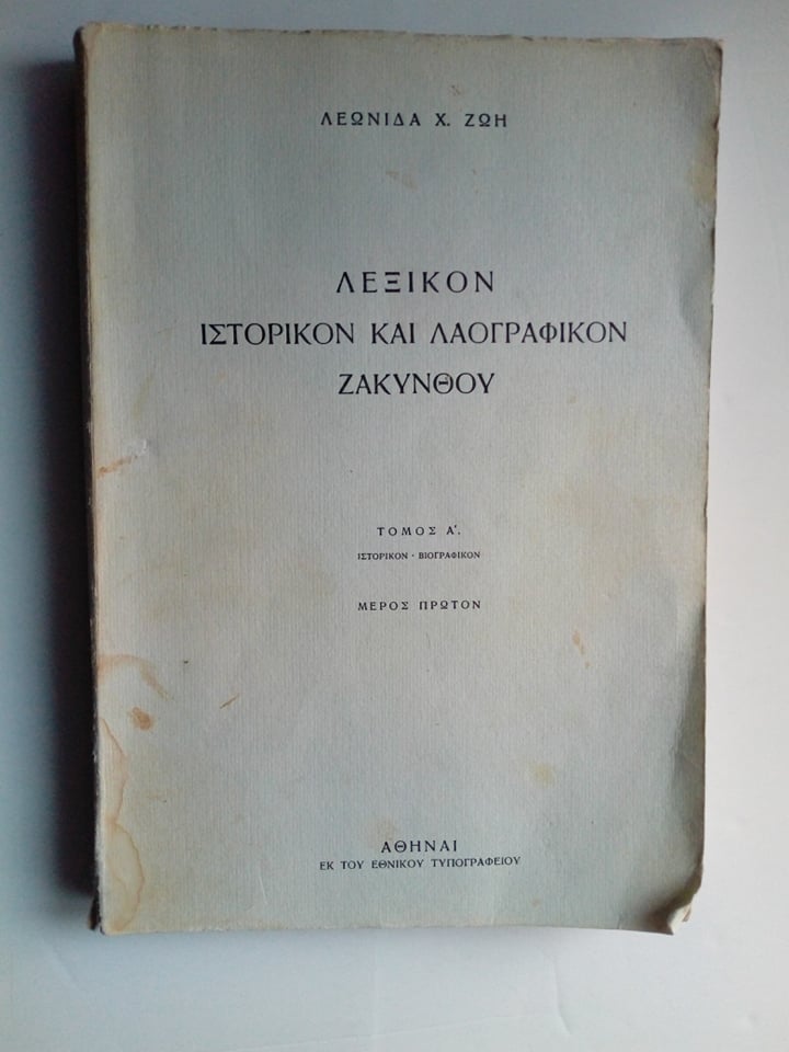 Λεξικόν ιστορικόν και λαογραφικόν Ζακύνθου Τόμος Ά Μέρος πρώτον Λεωνίδας Χ. Ζώης 1963