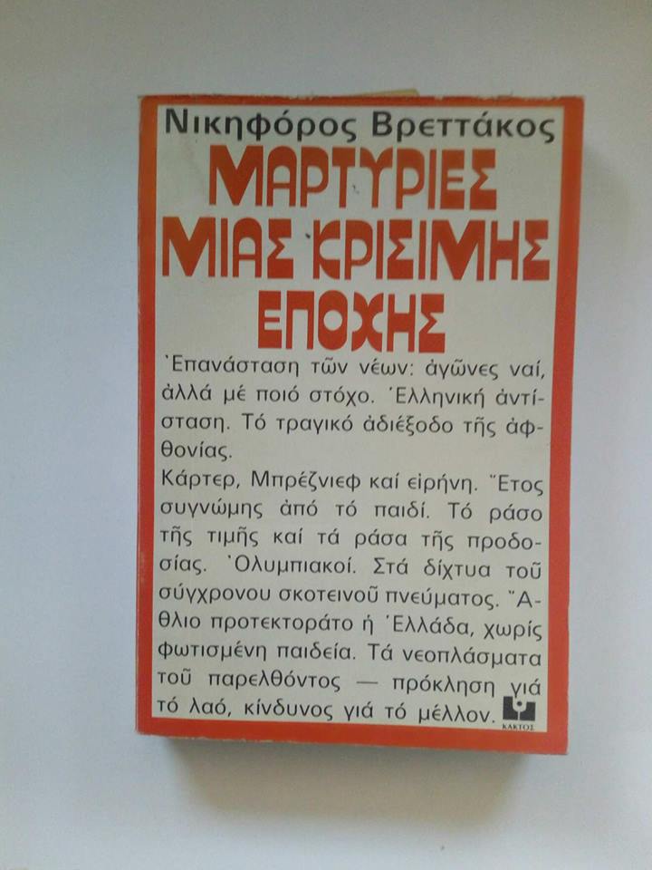 Μαρτυρίες μιας κρίσιμης εποχής Νικηφόρος Βρεττάκος Κάκτος 1979