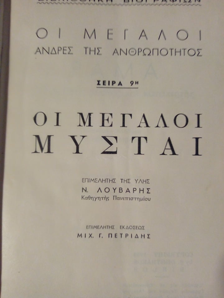 Οι μεγάλοι μύσται Εκδοτικός οίκος Βίβλος Ed. Sehure 1953