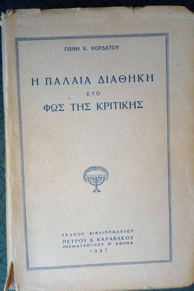 Η Παλαιά Διαθήκη στο φως της κριτικής Γ.Κ.Κορδάτος εκδόσεις βιβλιοπωλείου Καραβάκου 1947