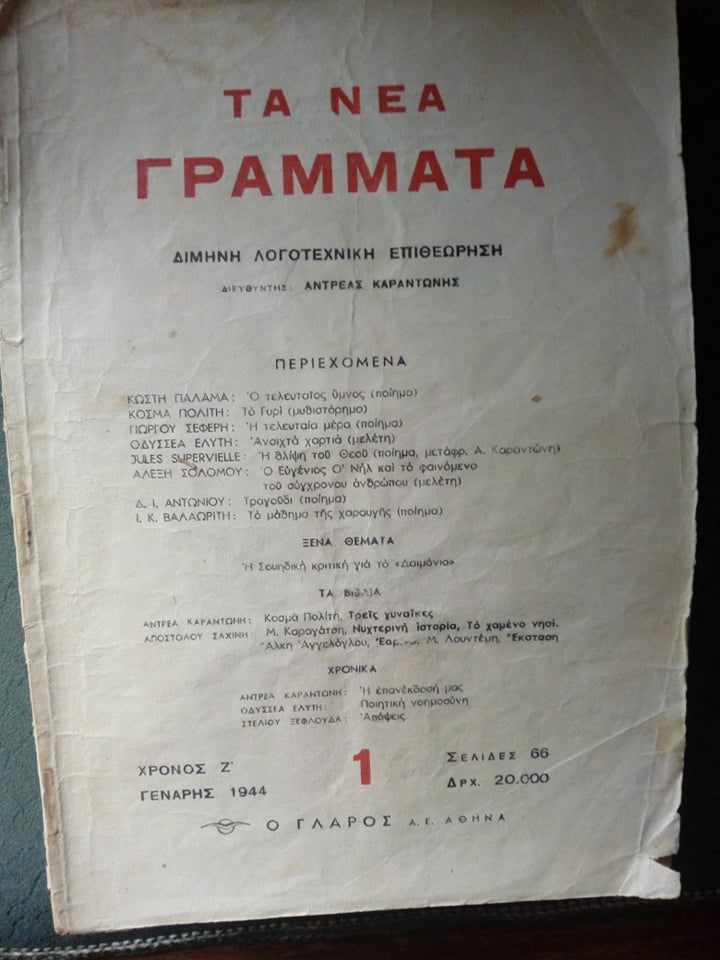 Περιοδικό Τα νέα Γράμματα Γενάρης 1944