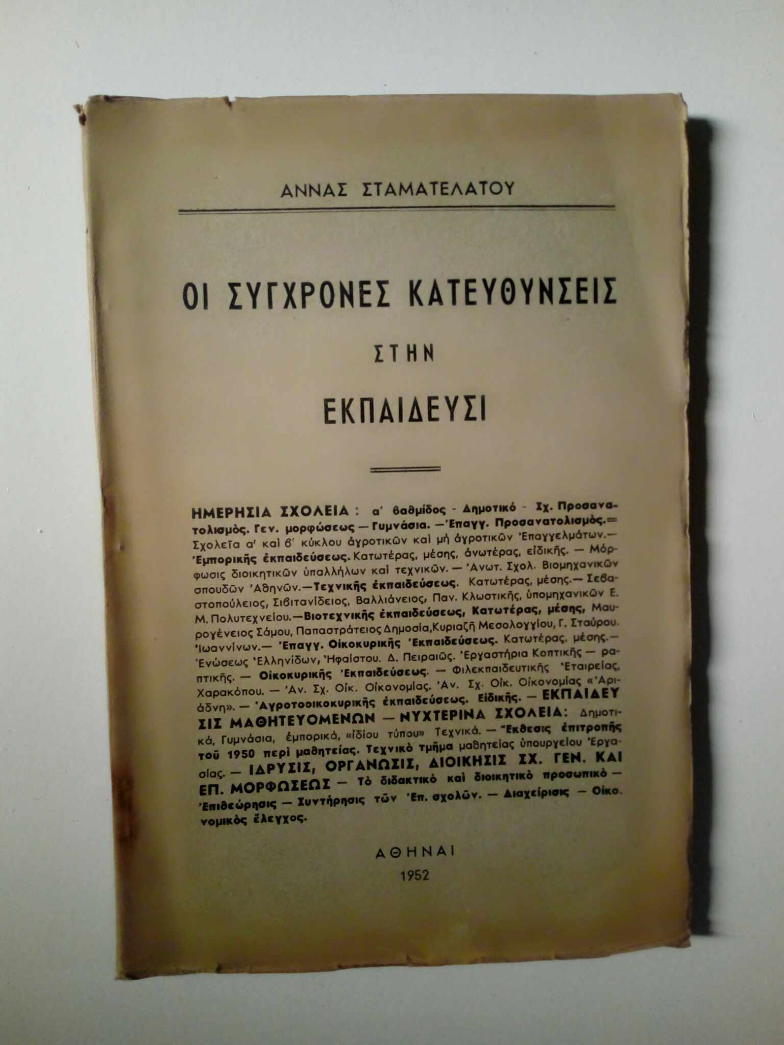 Οι σύγχρονες κατευθύνσεις στην εκπάιδευσι Άννα Σταματελάτου Αθήνα 1952