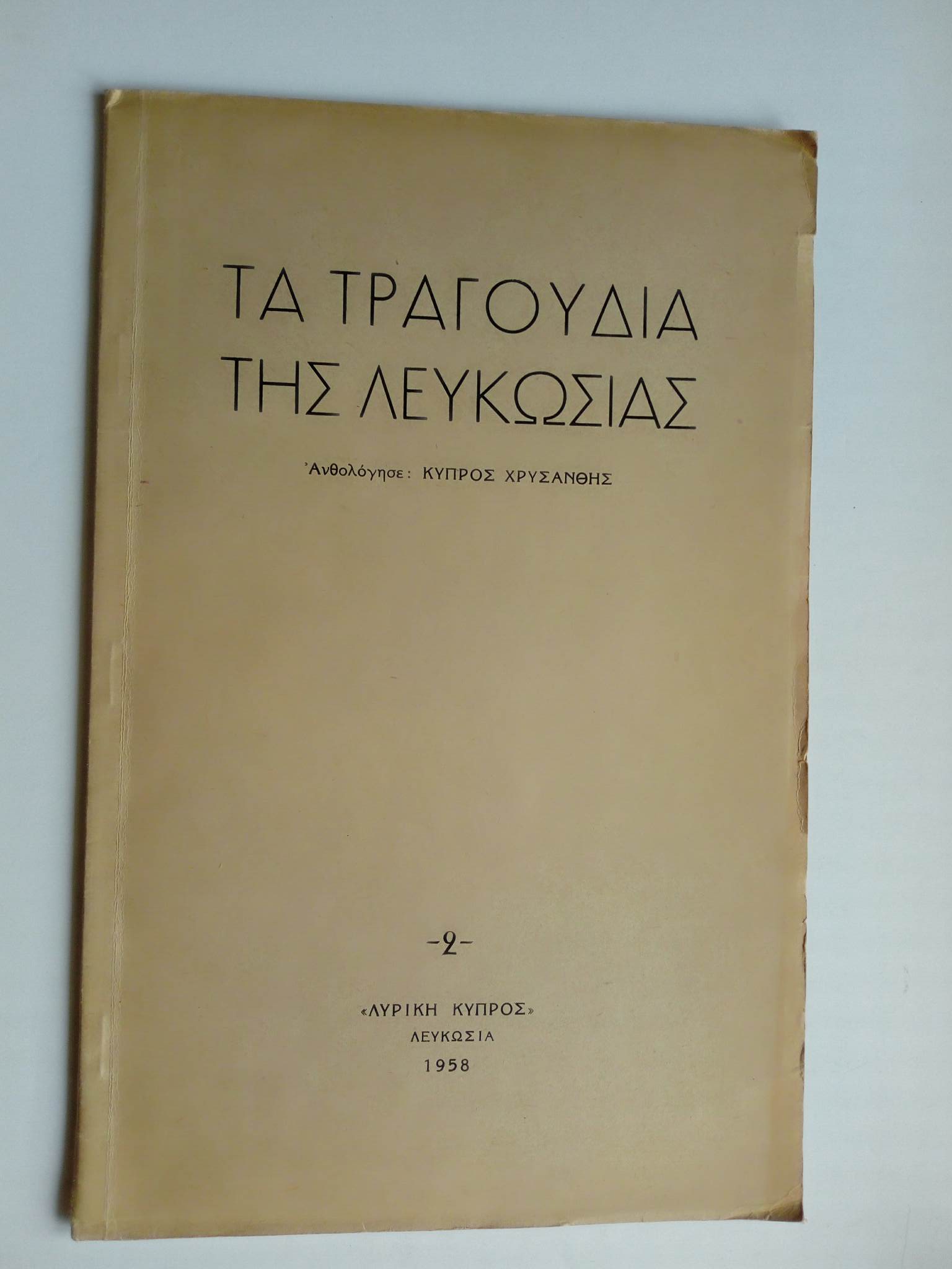 Τα τραγούδια της Λευκωσίας Ανθολόγηση Κύπρος Χρυσάνθης 1958